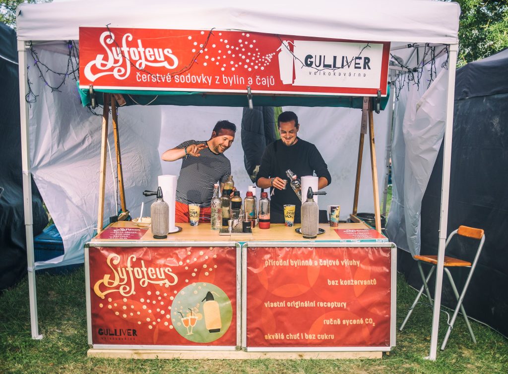 Navštivte Velkokavárnu Gulliver v altánu v parku Komenského ochutnejte jejich originální sodovky Syfoteus! Osvěžte se pivem Zlínský švec z Pivovaru Malenovice! Chutnat budou o to víc, když si je dáte z originálního festivalového kelímku. Ty letošní navrhli zlínští výtvarníci Jana Svobodová a Matěj Komínek. Chybět nebude ani zmrzlina, dobroty z grilu nebo osvěžující letní drinky.