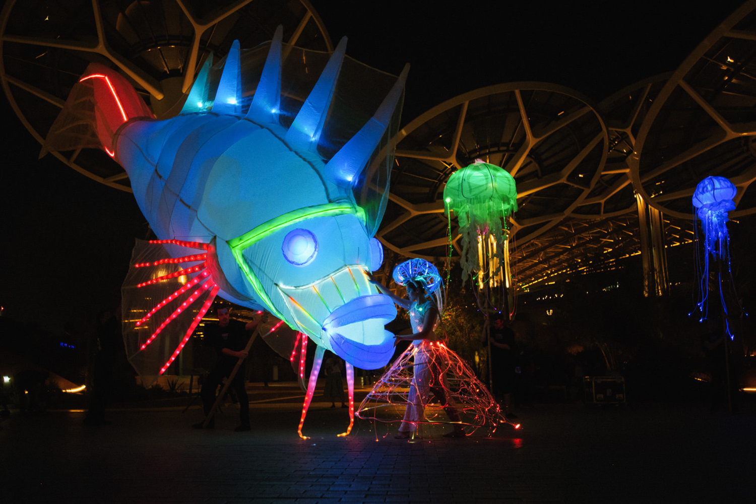 Chybět nebude ani letos unikátní program, který propojuje svět divadelního a výtvarného umění s moderními technologiemi. „V.O.S.A. Theatre přiveze kouzelné pouliční představení Návštěvníci se svítícími loutkami mořských živočichů. Jsou nepřehlédnutelné,“ prozradila Jana Kubáčová. Návštěvníci jsou na programu v pátek 27. 6. od 21.30 v parku Komenského a u zámku.